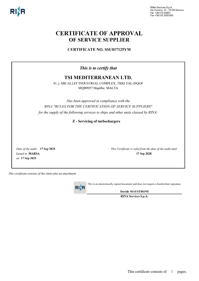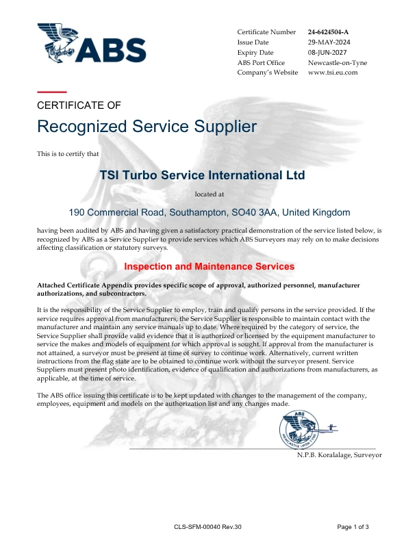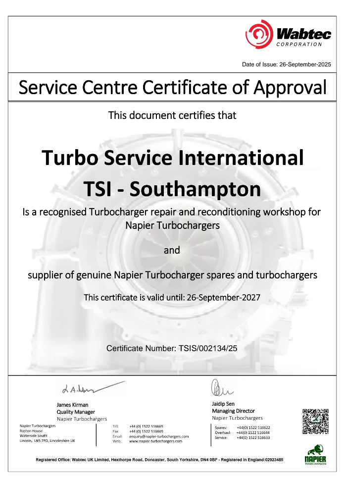 All of our engineers based in Rotterdam, Southampton and Houston are fully trained in all makes of turbocharges and regularly attend OEM factory courses.