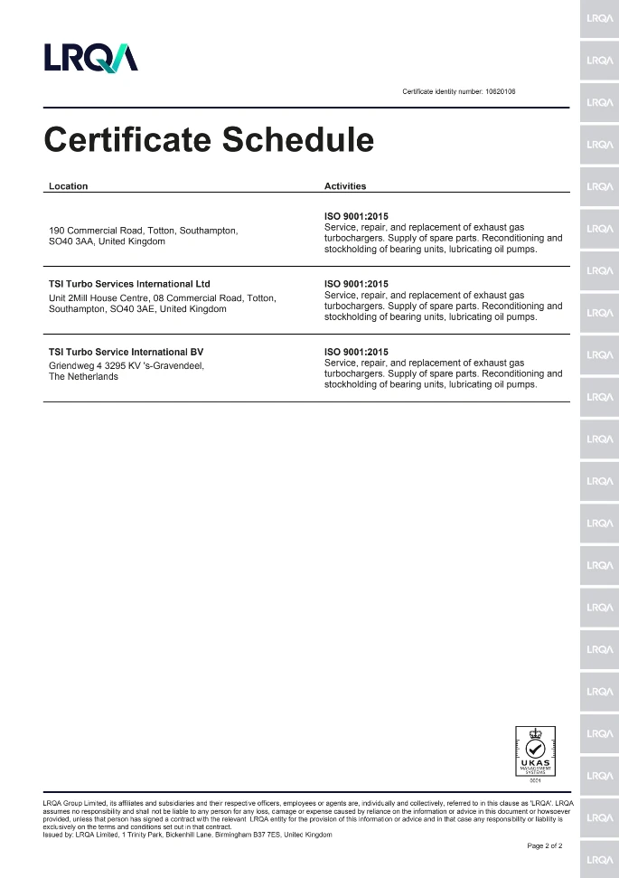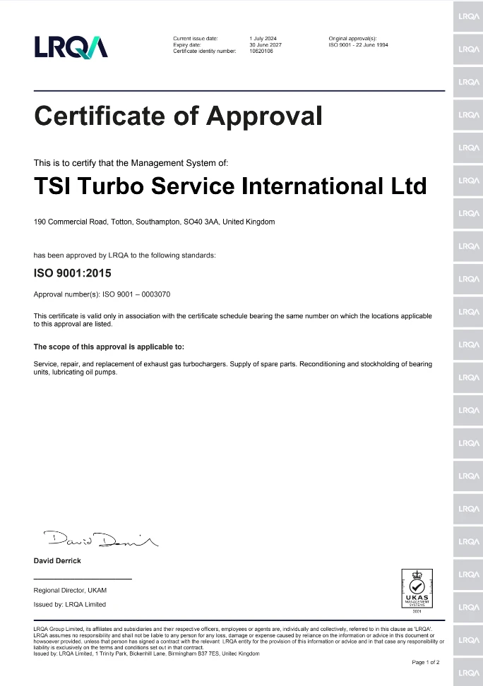 Maintaining a turbocharger at the peak of efficiency whilst ensuring a safe working environment requires a broad range of specialised engineering skills and in depth product knowledge. This is reinforced by a comprehensive stock of parts, continual training and a quality programme to ensure that the highest standards are maintained.